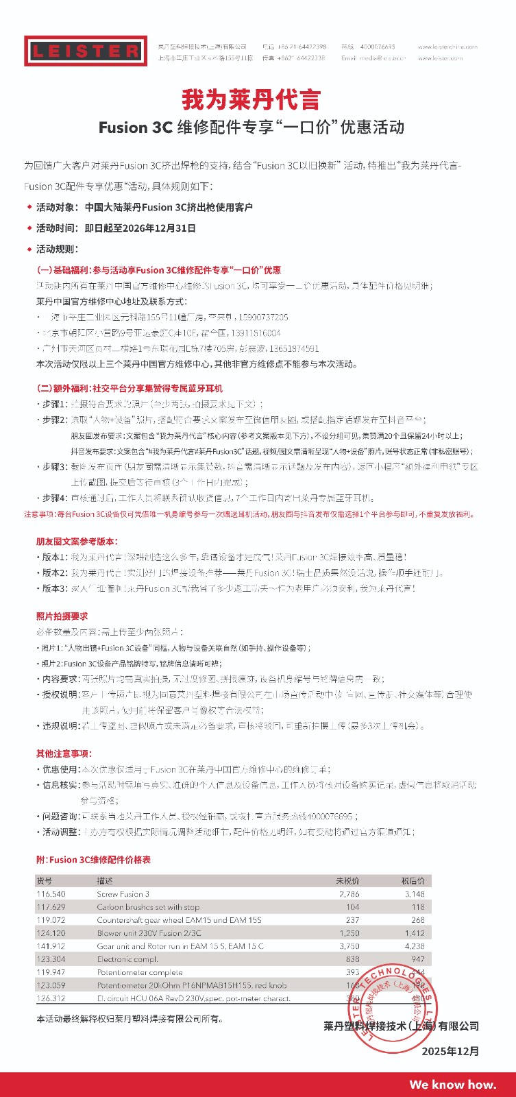 近70年来,莱丹一直专注于塑料焊接工艺和热风技术。LEISTER产品的研发和生产均在瑞士进行,让莱丹产品和品质得到了诸多好评。