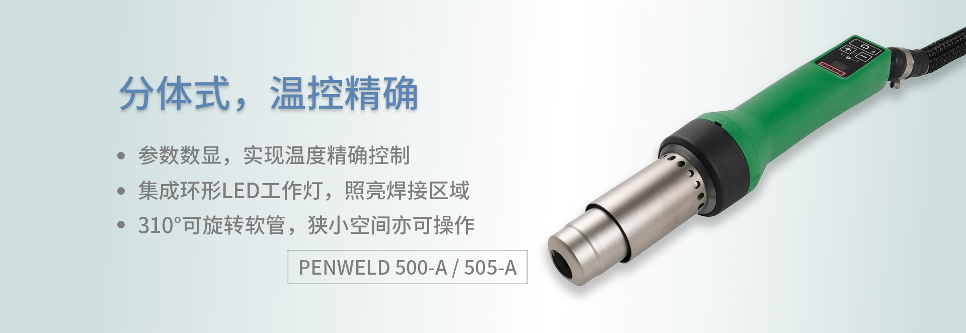 · 310°可旋转软管配合特殊形状手柄,实现更多焊接可能。